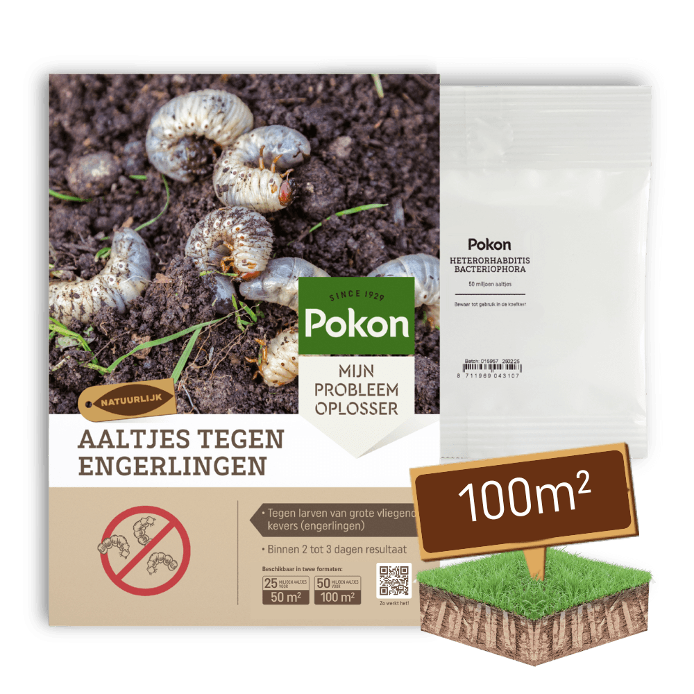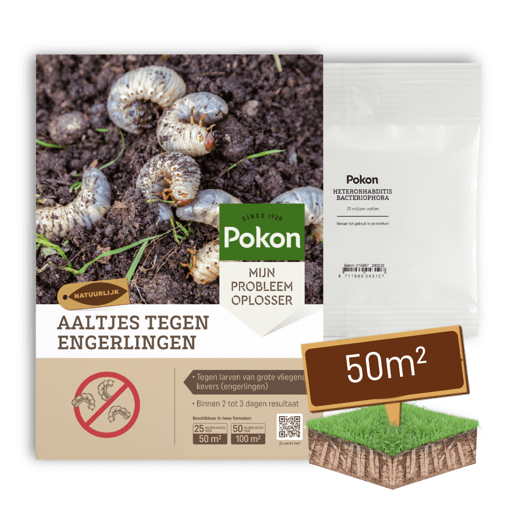 Engerlingen zijn de larven van bepaalde kevers, zoals de meikever of junikever. Ze zijn meestal C-vormig, romig wit van kleur met een bruine kop en kunnen tot ongeveer 4 cm lang worden. Engerlingen leven ondergronds en voeden zich met plantenwortels, wat tot aanzienlijke schade aan je gazon of tuin kan leiden. Als je gele of bruine plekken in je gazon ziet of als het gras gemakkelijk loskomt bij het trekken, heb je mogelijk last van engerlingen. Aaltjes tegen engerlingen zijn volledig natuurlijk en veilig voor andere dieren en planten in je tuin. Ze richten zich alleen op de specifieke plaag.
