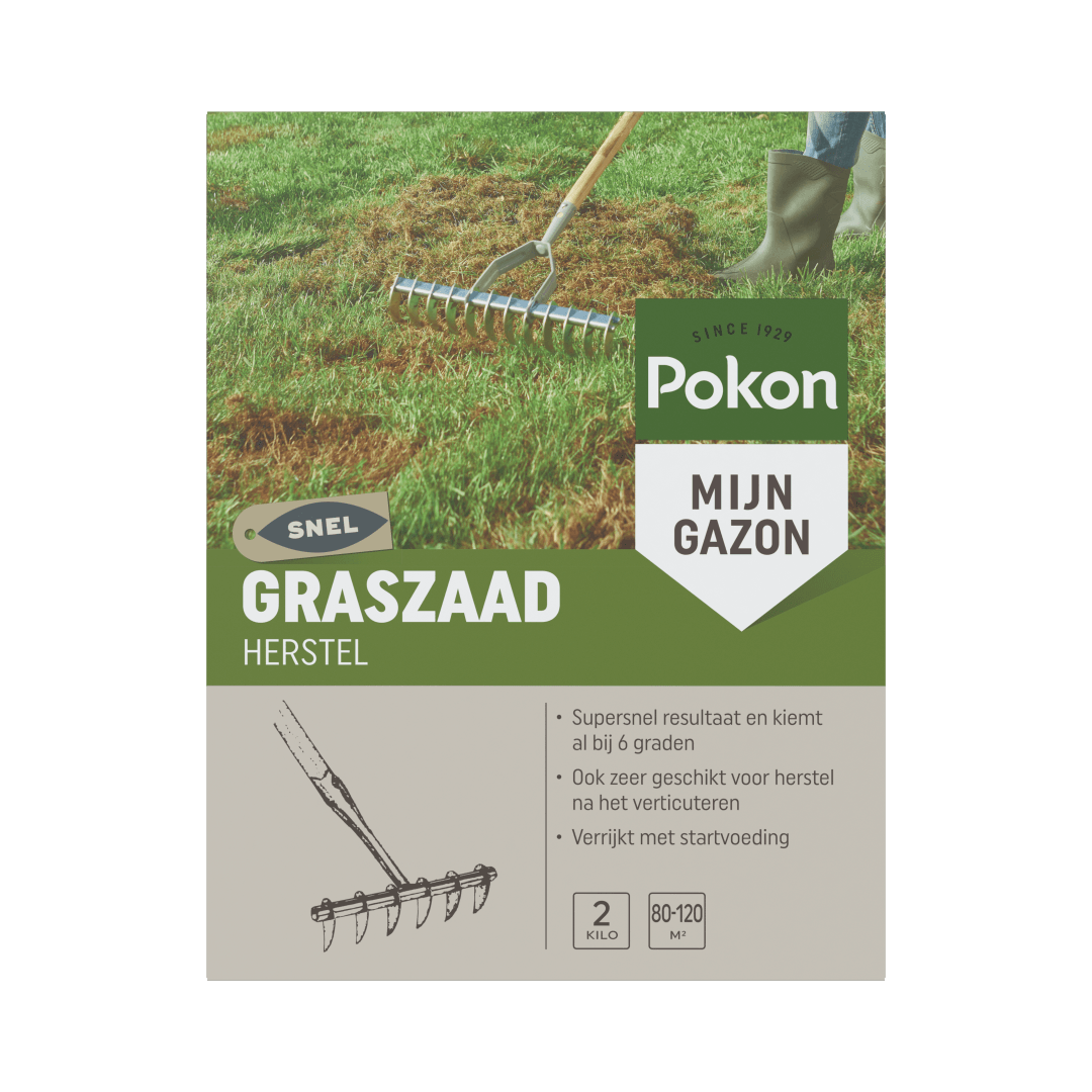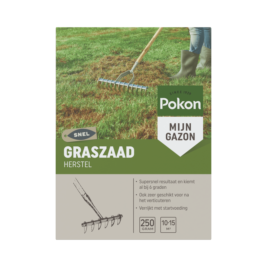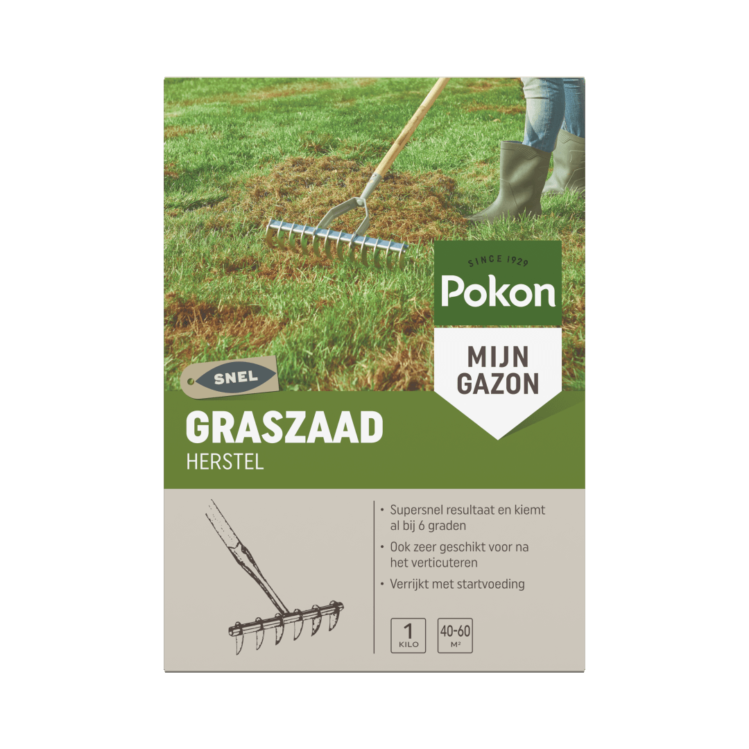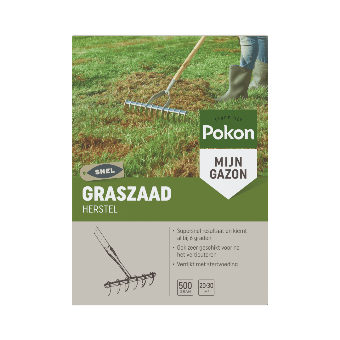 Als je jouw gazon wil gaan herstellen is Pokon Graszaad Herstel de juiste optie voor je. Dit graszaad is met SOS technologie, dit staat voor Super Over Seeding. Dit is een speciale techniek voor graszaad die zorgt voor zeer snelle kieming, zelfs bij lage temperaturen vanaf 6°C. Dit maakt het ideaal voor het snel herstellen van (speel)gazons, ook al in koudere maanden. Gras zaaien in voorjaar of najaar is een goed idee. Beide perioden zijn vaak wat vochtiger, wat ideaal is voor de kieming van het graszaad.