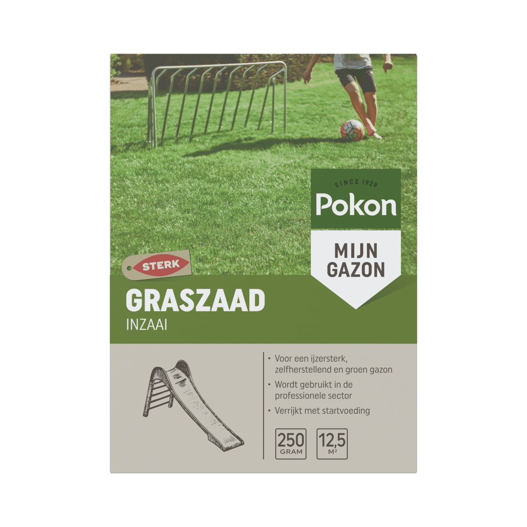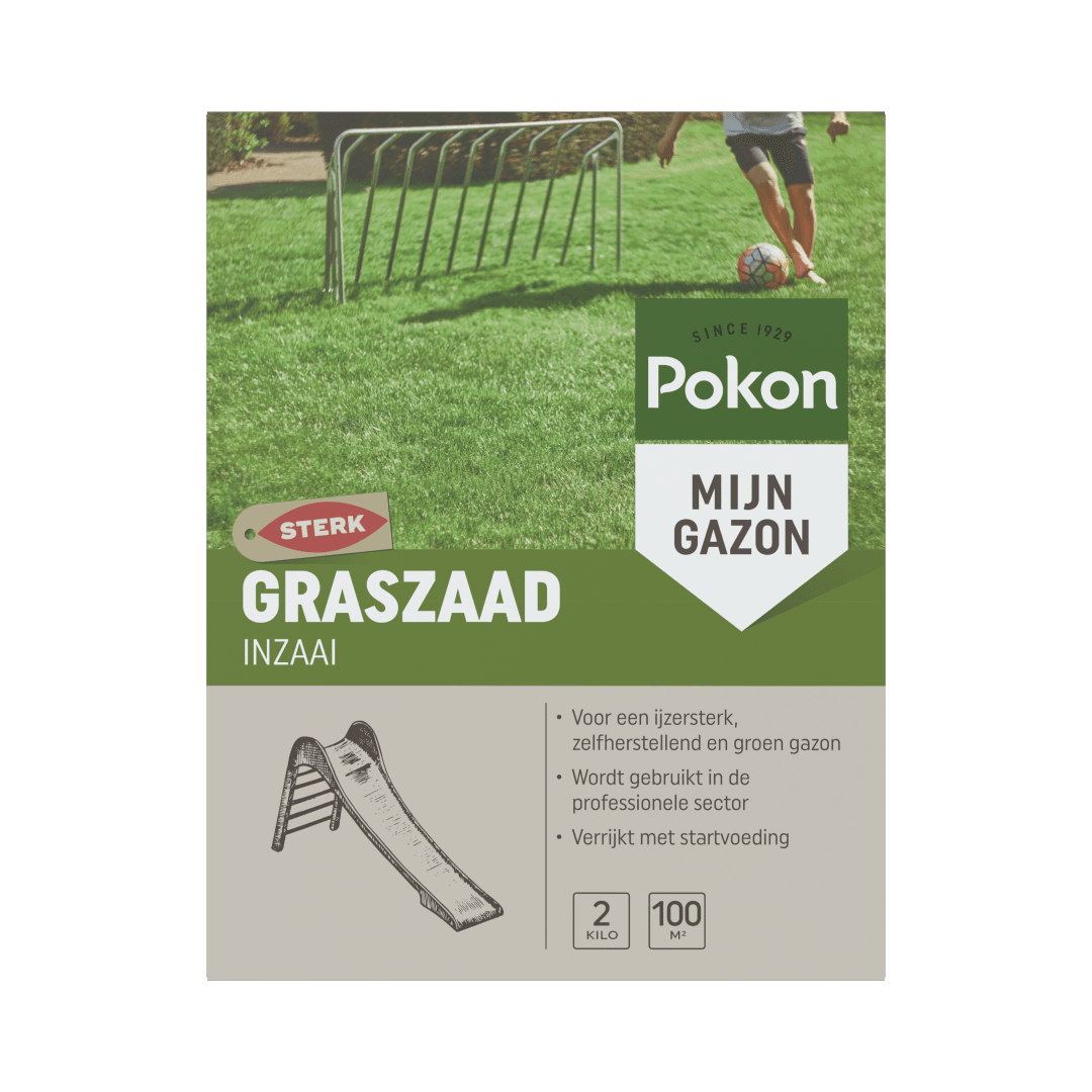 Als je een nieuw gazon wilt aanleggen is het belangrijk om voor een sterk graszaad te gaan. Pokon Graszaad Inzaai is een uniek RPR grasmengsel. Dit staat voor Regenerating Perennial Ryegrass oftewel het is een zelfherstellend raaigras. Dit maakt het een ijzersterk mengsel. Dit graszaad zorgt ervoor dat je gazon zichzelf kan herstellen. Het maakt namelijk nieuwe uitlopers aan die kale plekken opvullen. Dit is handig voor gazons die veel gebruikt worden, zoals sportvelden en speelplaatsen. Met RPR-graszaad blijft je grasveld altijd mooi en sterk, zelfs als er veel op gelopen wordt.