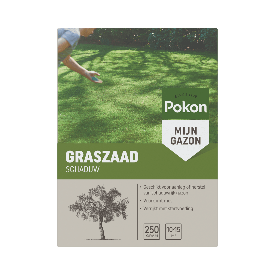 Ligt je gazon voor een groot deel of volledig in de schaduw? Dan kun je het beste Pokon Graszaad Schaduw kiezen. Dit graszaad bevat een mengsel dat ook groeit bij minder lichtinval. Dit voorkomt mosvorming. Je kunt dit graszaad kopen als je een schaduw gazon gaat aanleggen of herstellen.