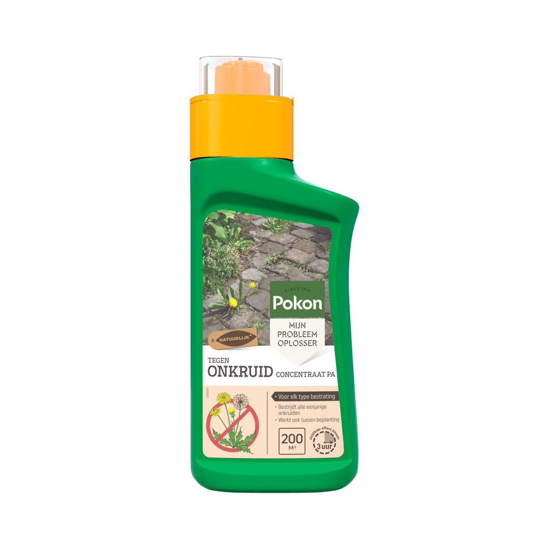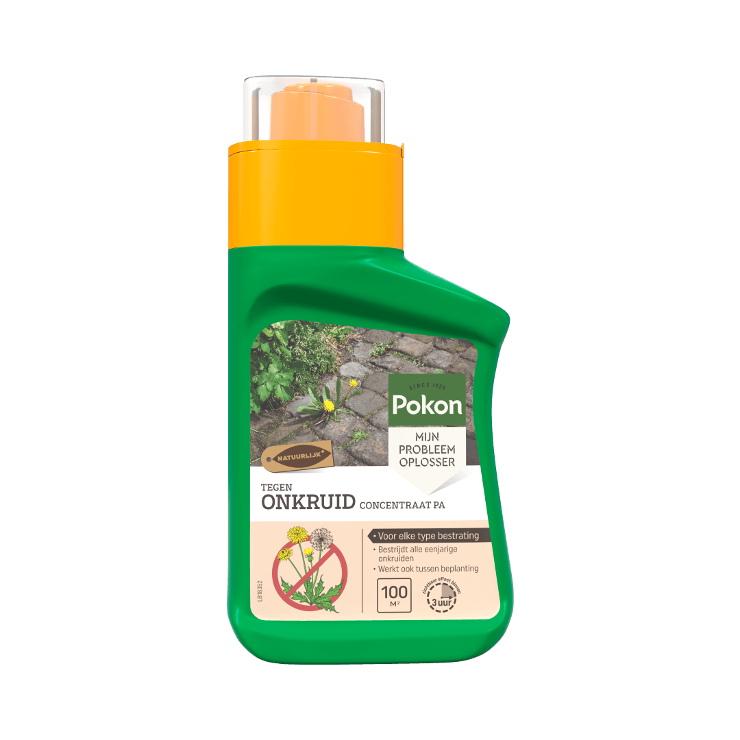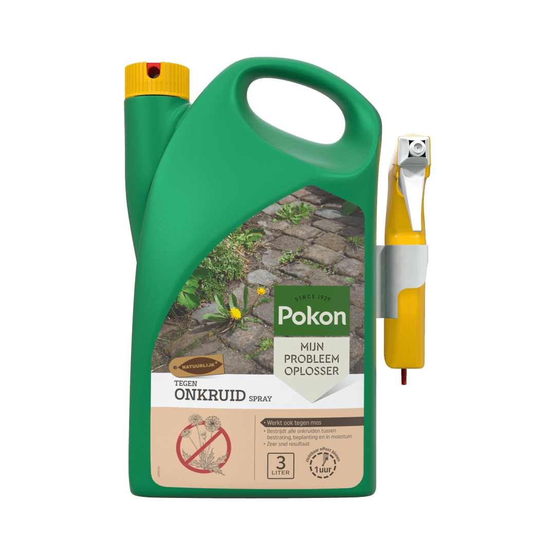 Onkruid kan er voor zorgen dat met jouw met zorg aangelegde terras verzwakt of scheef komt te liggen. Dat wil je natuurlijk het liefst voorkomen. Heb je onkruid tussen je terrastegel? Wacht dan niet te lang met verwijderen. Hoe groter de plant, hoe langer en sterker de wortels. Kies voor Pokon Tegen Onkruid Spray of Pokon Tegen Onkruid Concentraat. Beide producten werken op basis van een in de natuur voorkomende stof, namelijk azijnzuur en nonaanzuur. Deze werkzame stof wordt snel afgebroken in de bodem en zijn niet schadelijk voor omliggende planten.
