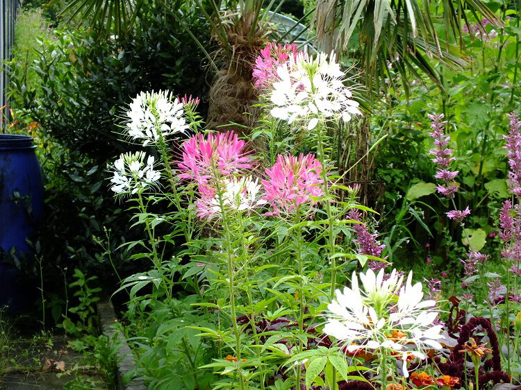 Cleome hassleriana, ook bij haar lukt het soms om haar te laten kiemen bij kamertemperatuur. Maar veel fijner vindt ze het om een langere periode met vooral sterk wisselende koele temperaturen te krijgen voor de kieming