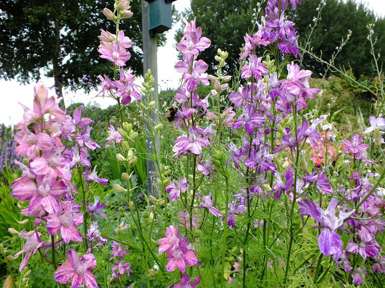 Voorbeeld van een koudekiemer: de eenjarige Consolida ajacis (ook wel Delphinium ajacis) Splish Splash. Soms lukt het om haar te laten kiemen bij kamertemperatuur maar veel fijner vindt ze het om een langere periode met vooral sterk wisselende koele/koude temperaturen te krijgen voor de kieming.