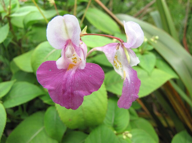 Tot slot nog een foto van Impatiens balfourii, ook weer een eenjarige die vooral graag net voor de winter buiten wordt gezaaid. En ook zij zaait zich net als de Polygonum rijkelijk jaar na jaar uit als je haar eenmaal hebt.