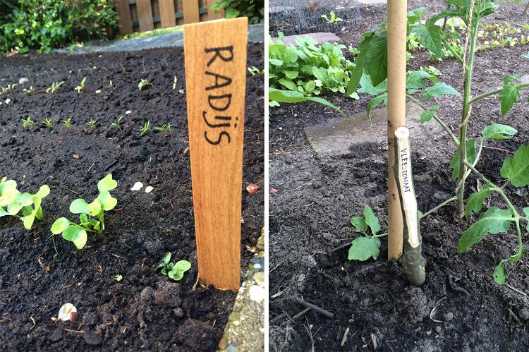 Als je gaat zaaien plaatst dan altijd even een bordje wat je hebt gezaaid. Het is niet alleen leuk om bij te houden hoelang iets erover doet om te ontkiemen. Maar ook heel handig om te weten wat je nou ook alweer waar hebt gezaaid. Er zijn heel veel leuke zelf maak ideeën voor de naambordjes, deze heb ik eerder gemaakt. Je kan natuurlijk ook mijn moestuinplan uitprinten en goed bewaren.