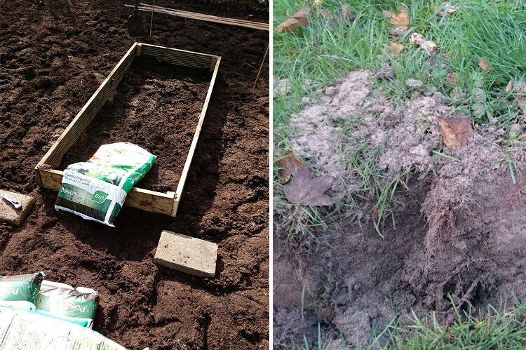 Door de wind liggen er waarschijnlijk veel takken in de moestuin. Ook zal er veel onkruid te zien zijn, aangezien er al even niks gedaan is en de rest van de tuin heeft gewoon even een opfrisbeurtje nodig. Je mag nu dus lekker schoonmaken en opruimen.