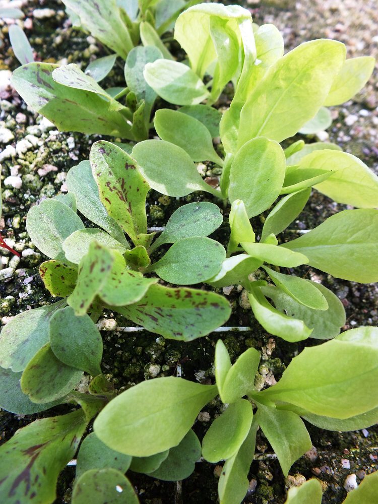 En sla kan gewoon best goed tegen wat kou; geen strenge vorst plus korte/donkere dagen, maar je kunt de meeste slarassen gewoon in maart onder koud glas of buiten zaaien, en dan krijg je dit: