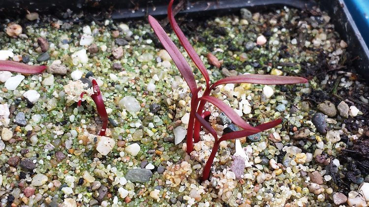 Tot slot nog 2 foto’s; de eerste zaailingen van Polygonum oriëntale: een koudekiemer; en dat betekent dat je haar bij voorkeur vlak voor de winter of in de winter zaait. Zonder de natuurlijke periode van winterkou en winterrust kiemt ze niet. Afgelopen week zag ik de eerste zaailingen verschijnen (ik heb de zaden in de eerste week van januari in de vrieskou gezaaid). Hoera, ook dit jaar kunnen we weer genieten van deze mooie eenjarige!