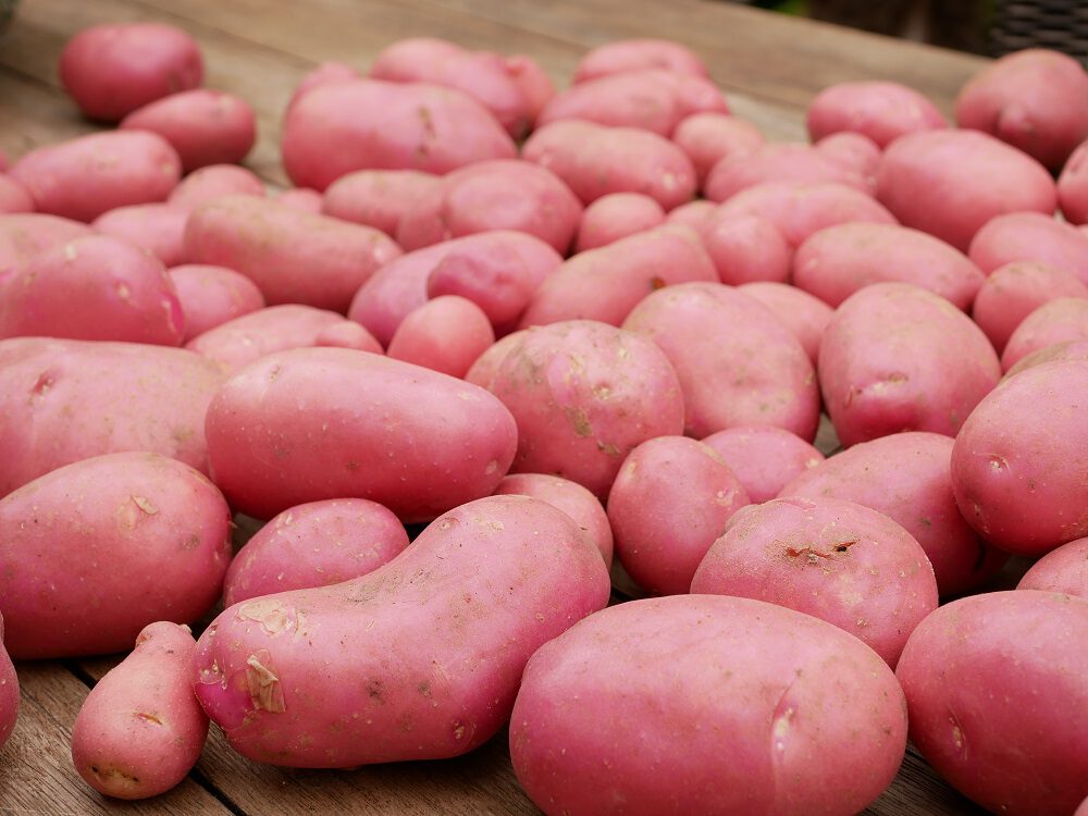 Je ziet op deze foto dat de aardappelen al los liggen en niet meer aan de wortels ‘hangen’.
