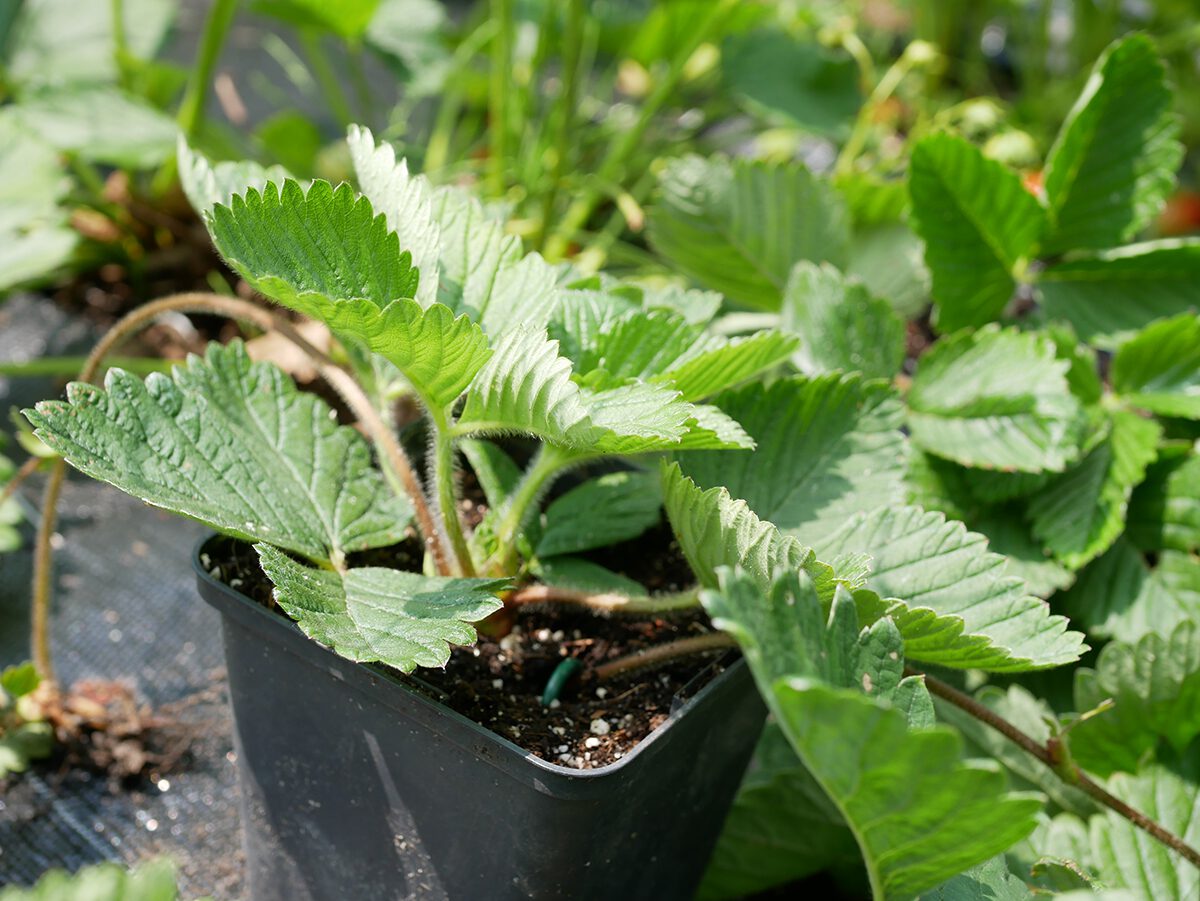 Wanneer de stek groot genoeg is (en er dus worteltjes onderuit het potje komen) mag ze als jonge aardbeiplant worden uitgeplant. Dat doe je in humusrijke, luchtige en vochtvasthoudende grond. De planten kunnen nog flink groeien en zo dus sterk de winter in gaan en volgend jaar al een leuke opbrengst geven (sommige doordragers kunnen zelfs in het najaar van dit stekjaar al wat rijpe aardbeien produceren).