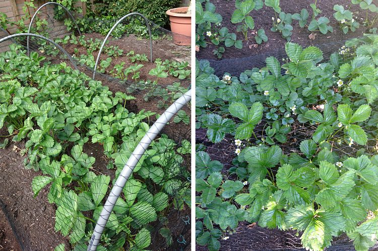 In mijn tuin staan meerdere rassen aardbeien. Dit doe ik omdat ieder ras anders smaakt, maar ook omdat ieder ras op een ander moment van het jaar bloemen en dus vruchten geeft. Je kunt nu al heel veel bloemen van de aardbeienplanten vinden in mijn moestuin. Ik heb zelfs mijn minimoestuin (stukje grond van 8m2 van het eerste jaar dat ik startte) omgetoverd tot aardbeienparadijs.