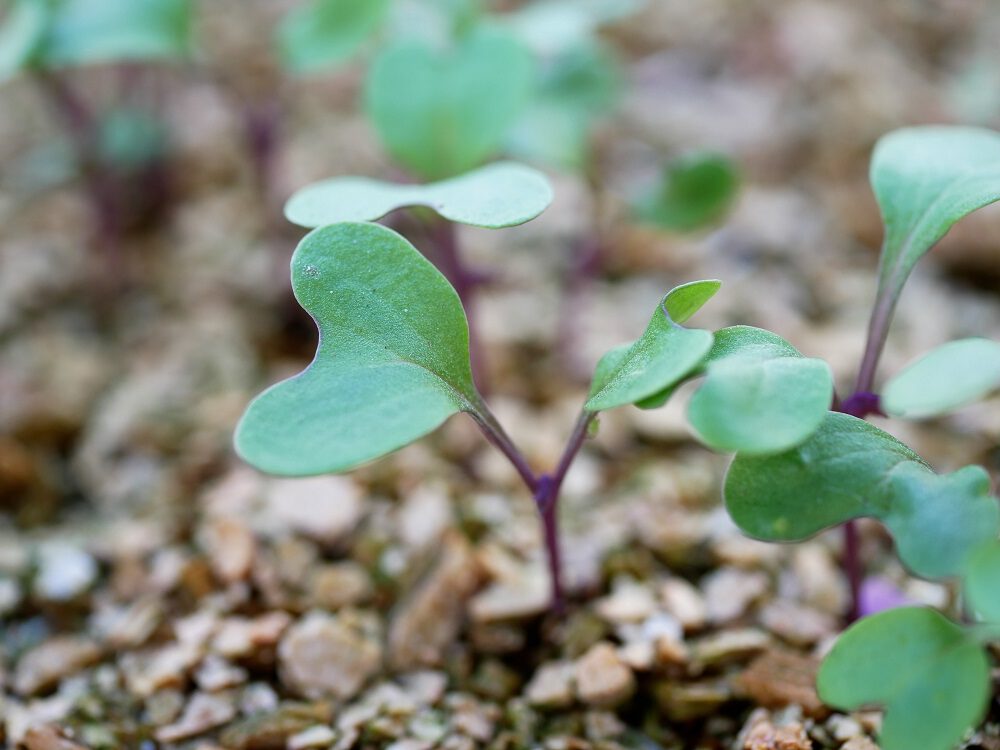 Ik verspeen elke zaailing na het kiemen naar een 9-centimeterpotje met potgrond zodat ze eerst groot en sterk kan worden voor ik ze buiten op een ruime afstand (60 centimeter) uitplant. Het is grappig om te zien dat er variaties zijn in de kleur van de planten. Je kunt dat bij de zaailingen al zien (meer grijsgroen of juist meer paars in de kleur):