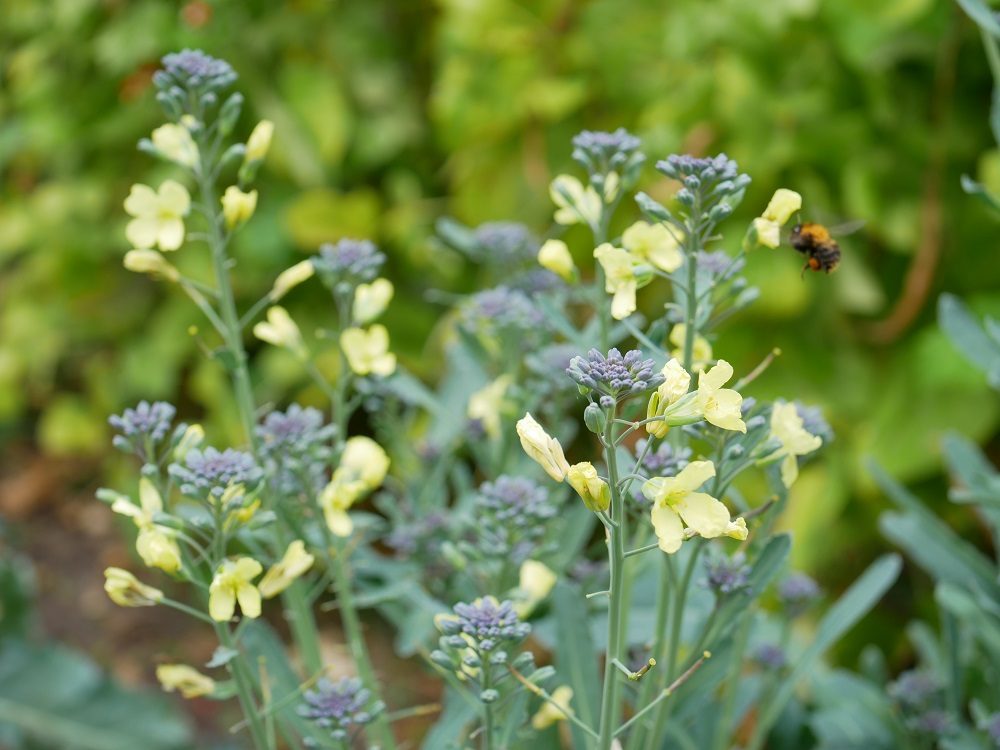 Al met al is de teelt van broccolini erg leuk, zowel de winter- als de zomervariant. Het grote voordeel van winterbroccolini is dat de planten van de herfst tot in het voorjaar decoratief zijn, juist in een tijd dat er verder niet zoveel groenten in de moestuin staan. Het voordeel van zomerbroccolini is dat er uiteindelijk altijd wel wat broccoliroosjes doorschieten. Dat klinkt vooral als een nadeel, maar ook dan zijn ze nog eetbaar, zelfs ook wanneer er al bloempjes bloeien. En wij zijn niet de enigen die er dan van genieten, broccolinibloempjes lokken heel veel hommels en andere bestuivers. Het is midden in de zomer een drukte van jewelste rond de planten!