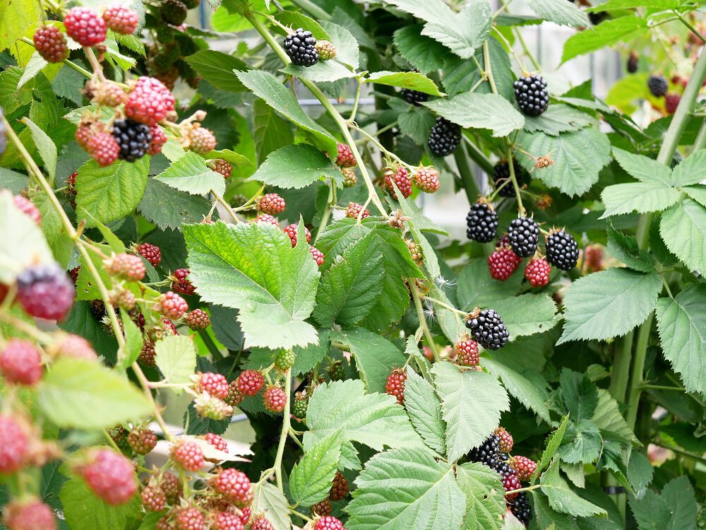 Is er dan alleen maar ellende door de droogte? Nee hoor. Mocht je (sub)tropische groenten als tomaten, paprika’s, pepers en aubergines buiten telen, dan wordt dit, mits je voldoende water geeft, wellicht een geweldig oogstjaar. Er zijn door de droogte weinig of geen schimmels zoals meeldauw. De gevreesde aardappelziekte heeft dit jaar onze tuin overgeslagen, en alleen de Dahlia’s hebben wat last van luis. De mediterrane kruiden als rozemarijn, salie, etc. hebben ook geen enkel probleem met deze droogte/warmte. De Lathyrussen lijken langer te bloeien dan in andere jaren. En er zijn jaren dat de bramen in regenbuien al schimmelen voor ze geplukt kunnen worden. Maar dit jaar hangt de struik vol met heerlijk zoete rijpe, gave bramen: