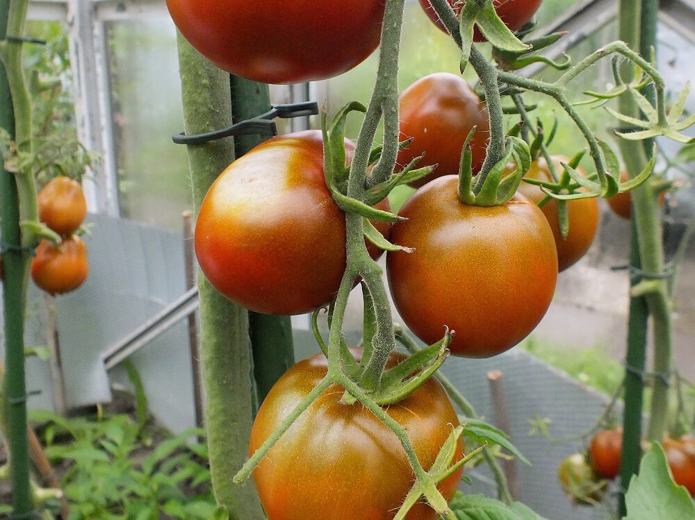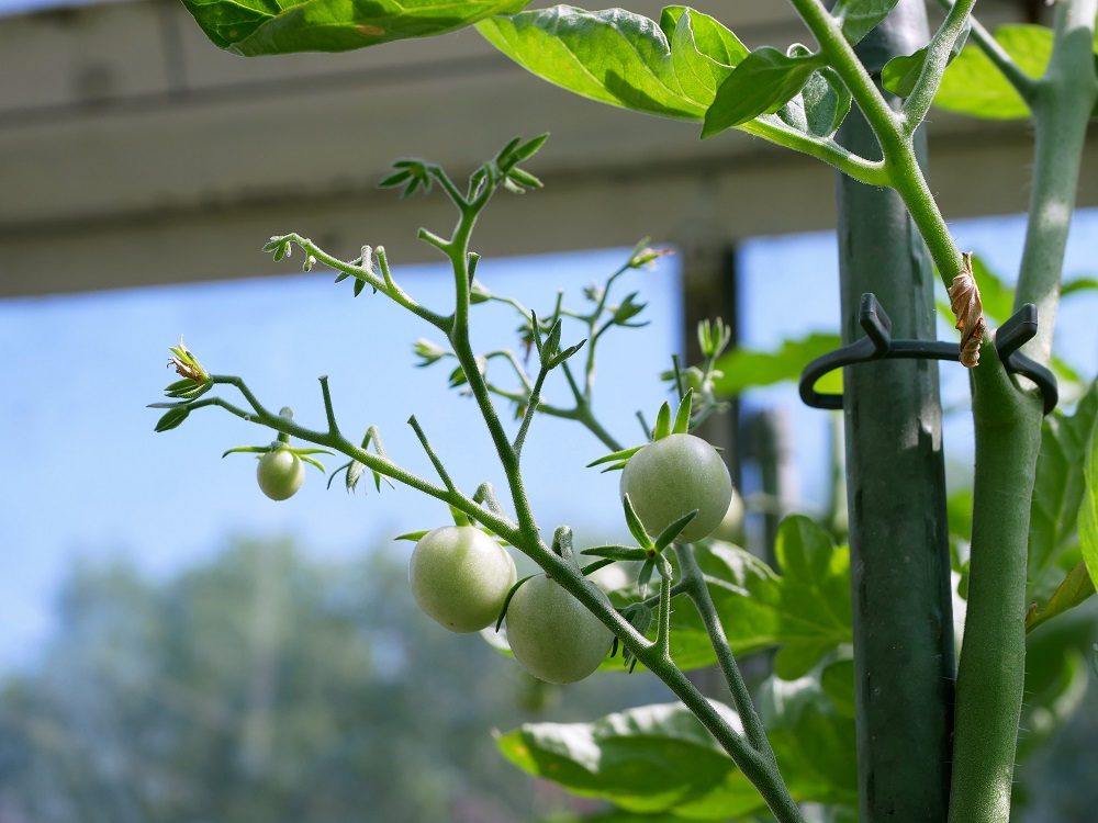Tomaten hebben tijdens de groei veel vocht nodig en tijdens de rijping juist minder water. Onder glas of plastic kunnen door de extreme warmte (al dan niet in combinatie met een hoge luchtvochtigheid) bloempjes onbevrucht afvallen. Op de foto zie je tussen de bloempjes ook kleine ’stokjes’; de afgevallen bloempjes.