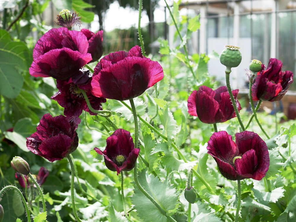 Dit is ook een Papaver somniferum, maar nu van het ras Lauren’s Grape. Enkelbloemig. Maar wel prachtig donkerpaarsrood van kleur. En ze bloeit veel rijker dan de meeste dubbelbloemige rassen.