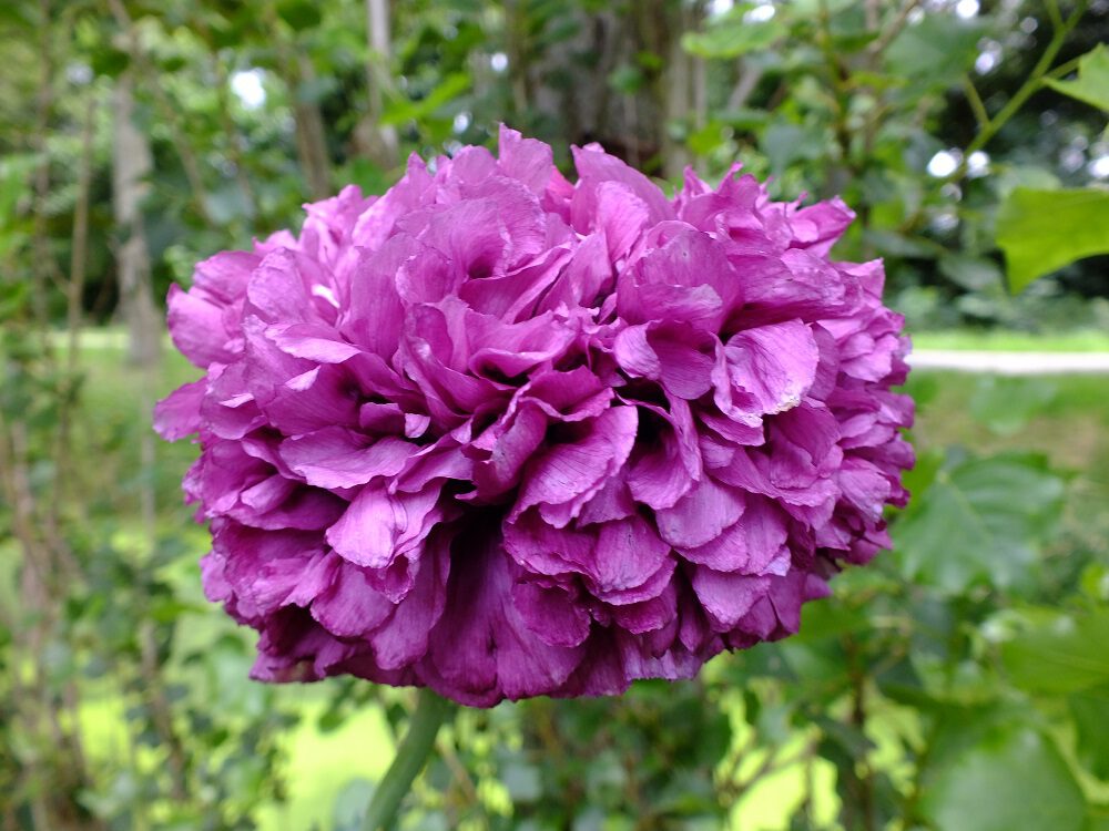 Dit is een Papaver somniferum (Nederlandse naam Slaapbol) van het ras Tallulah Belle Blush. Fel gekleurd, extra groot en extra gevuld. Erg mooi. Maar één of twee jaar later zaaide ik deze:
