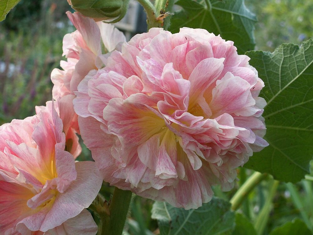 Dit is een dubbelbloemige stokroos van het ras Peaches & Dreams. Mooi hè! Groot, extra gevuld, prachtig gemêleerd van kleur. Daarbij is een enkelbloemige stokroos dan toch maar eenvoudig. Maar de dubbele stokrozen worden minder goed bezocht door bestuivende insecten. Dat is ook best logisch; want waar zitten hier de meeldraden? Ze zijn er wel hoor, maar wel een beetje verstopt tussen alle bloemblaadjes. En dat maakt een witte enkelbloemige stokroos toch ineens leuk: