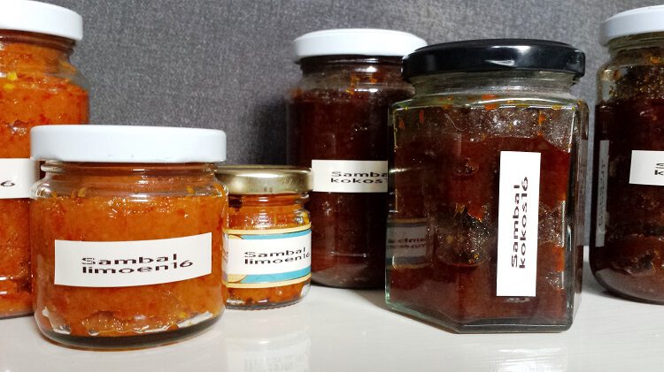 Ik heb het tot nu toe in de sambalsoorten die ik maakte wel Oosters gehouden, maar wil zeker ook eens wat meer gaan variëren…. als de ingrediënten maar bij elkaar horen (ik zie geen lekkere sambal ontstaan uit pepers met koriander, rozemarijn, gula djawa en ras el hanout – dat wordt een kakofonie van smaken uit verschillende werelddelen die (denk ik) niet goed bij elkaar passen. Denk vooral even na over de ingrediënten en gebruik kruiden die bij elkaar passen.