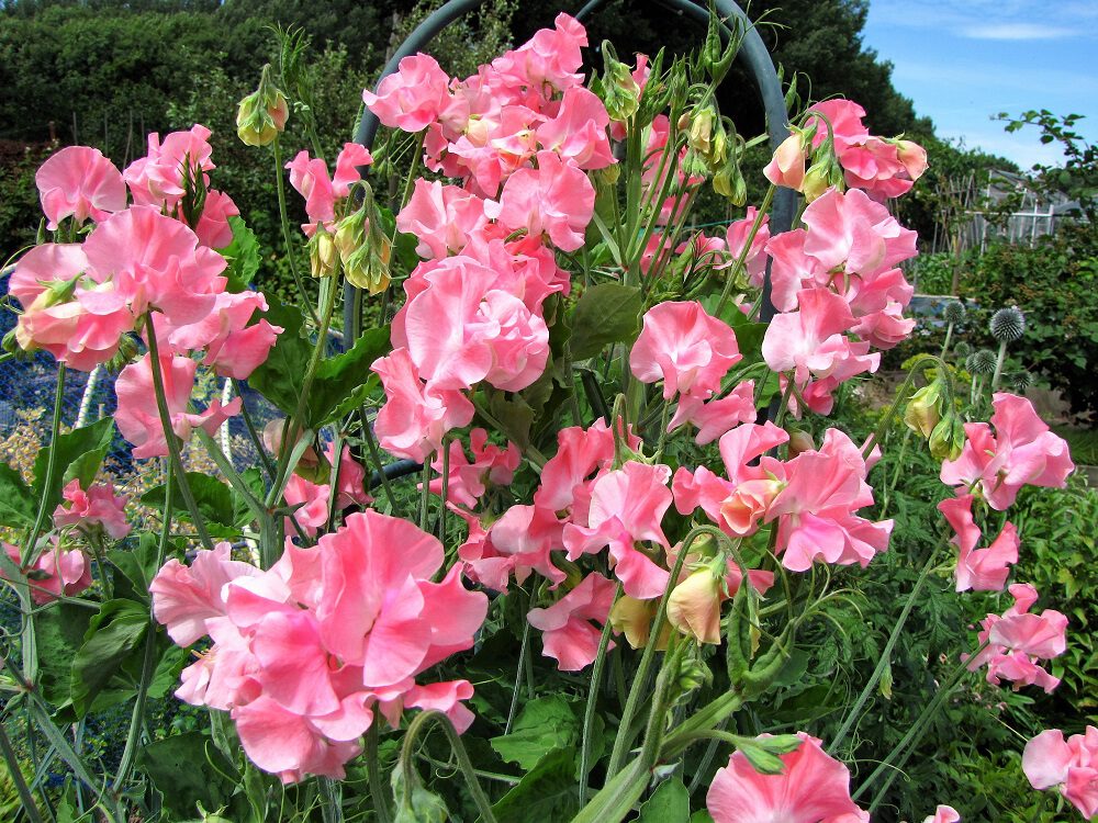 Ik hou van eenjarige bloemen in de moestuin, omdat ze de tuin vrolijk en zomers maken en insecten lokken. Mar bloemen voor de moestuin moeten, wat mij betreft, nog iets extra’s hebben. En Lathyrus odoratus is daar een goed voorbeeld van.