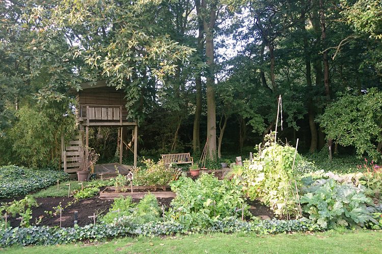 Hierboven een overzicht foto van de moestuin begin oktober! Deze is nog supergroen, zoals je kunt zien.