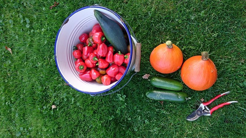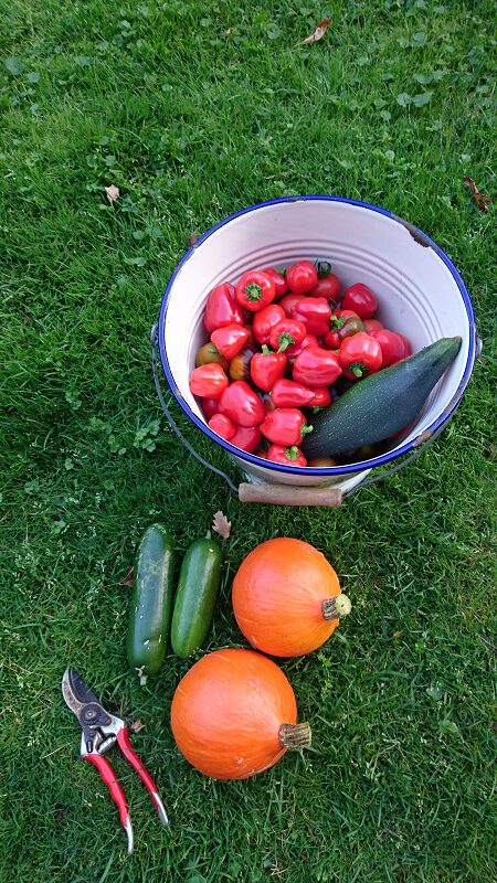 Ik heb uiteindelijk de vele geoogste paprikaatjes (zelfs nog geoogst in oktober) in een ovenschaal met knoflook en oregano 20 min. op 160 graden gegrild. Deze heb ik daarna in een gesteriliseerde pot gedaan en afgegoten met olijfolie. Zo kun je de smaak van de moestuin veel langer bewaren.