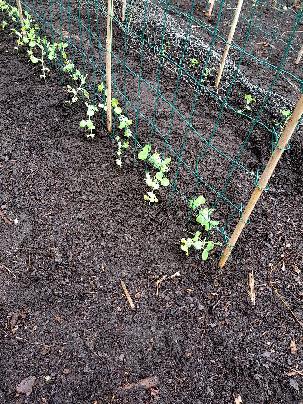 Mocht je (net zoals ik) veel last hebben van duiven, dan kun je de jonge plantjes nog wat afdekken met kippengaas, want hier kunnen de duiven niet doorheen.