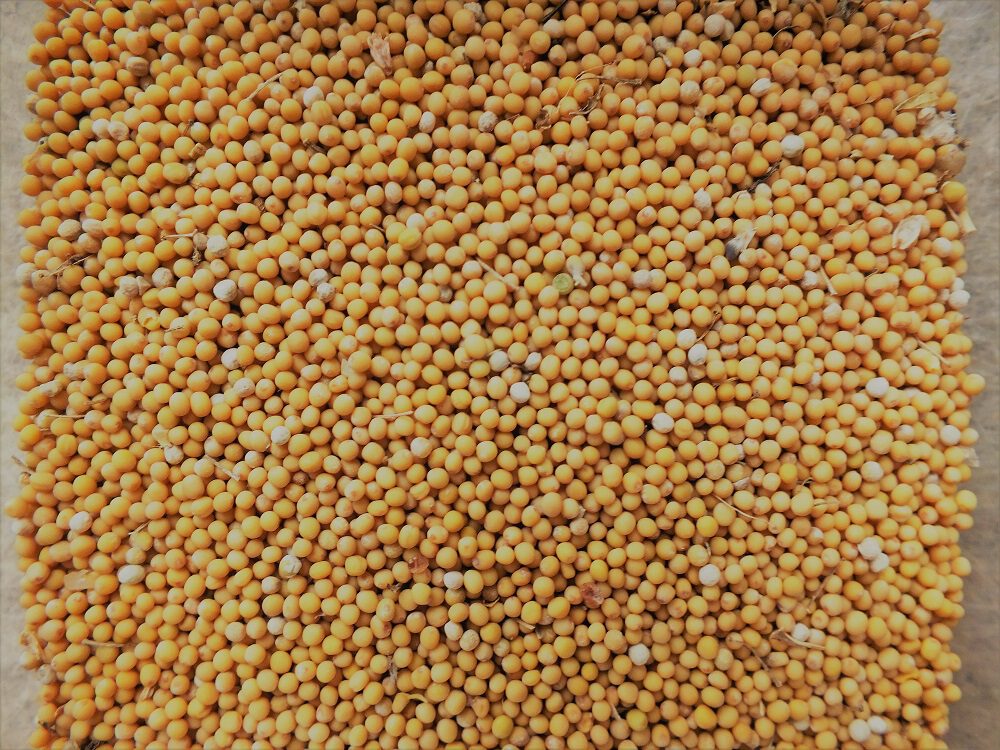 De opbrengst van bruin mosterdzaad is kleiner dan die van gele mosterd.