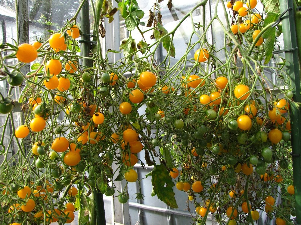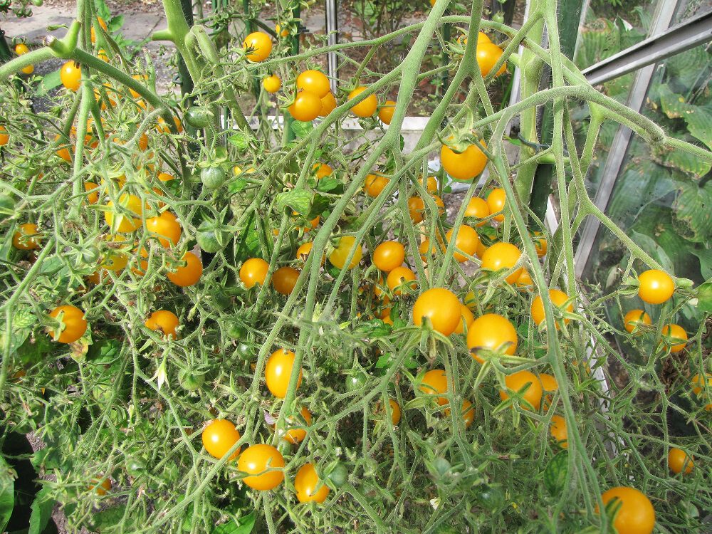P.s. Bij het zien van de foto’s kun je bedenken dat de tomaatjes voorzichtig moeten worden geplukt, omdat ze zo dicht op elkaar hangen beschadig je gemakkelijk rijpe of onrijpe tomaatjes.