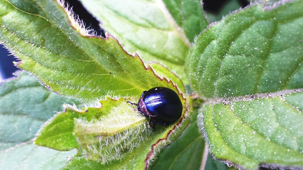 Tot slot is er één beestje dat nog wel eens roet in het eten wil gooien: de muntkever. We hebben er zeker niet elk jaar last van hoor, het hangt ook een beetje af van het weer, hoeveel munt je hebt en welke soort(en) en waar ze staan, etc. Zet verschillende planten/rassen vooral niet dichtbij elkaar want dat ziet er leuk uit maar maakt overstappen van de ene naar de andere plant extra makkelijk).