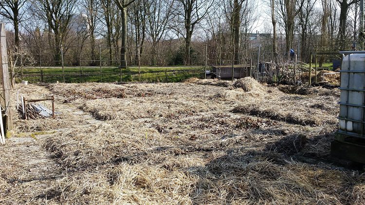 Zo ziet de tuin er nu nog uit, saai en kaal, bedekt met stro. Maar binnen een paar weken zullen hier al veel zaailingen in de grond staan, zullen de eerste fruitbomen gaan bloeien, zullen de aardappelen gepoot zijn, etc.. Alles komt nu tegelijk en de drukste tijd voor de tuin gaat beginnen; zaaien, verspenen, verplanten, poten, uitplanten, water geven, verzorgen, maar ook het onkruid gaat weer groeien, dus ook wieden, en noem maar op. Ik heb zelf altijd een goede planning nodig, al is het maar om ervoor te zorgen dat ik niet in april ineens bedenk dat ik helemaal ben vergeten om prei te zaaien.