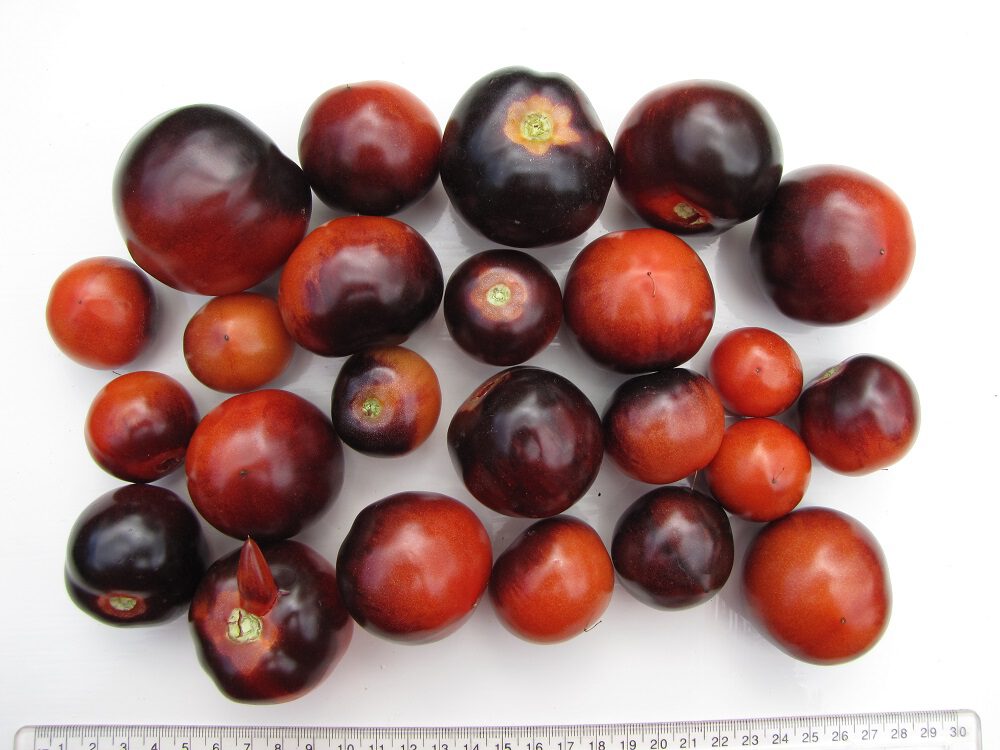 En dus teelde ik met plezier de OSU Blue, ook prachtig, zo mogelijk nog donkerder van kleur. Blauwe tomaten zouden door de anthocyaninen nog gezonder moeten zijn dan gewone tomaten, werd toen geschreven en geroepen. Tomaten zijn natuurlijk van zichzelf al heel gezond, bevatten onder andere veel vitaminen en mineralen, een hoog gehalte aan kalium, en daarnaast ook nog magnesium en lycopeen. Maar toch mooi meegenomen, dat gezonde blauwe stofje. De OSU Blue gaf ook best een goede opbrengst. Dus allemaal positief; maar helaas, ook weer allesbehalve lekker.