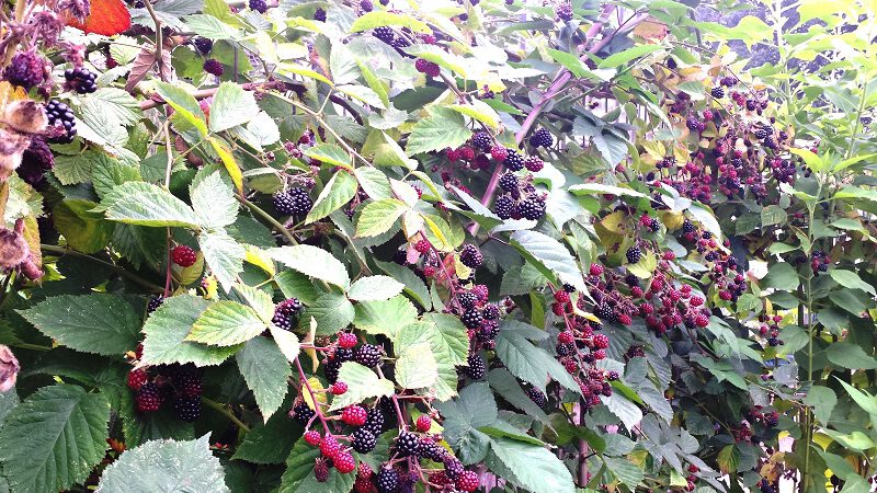 Deze week is de oogst van bramen hier begonnen. Dat wordt naast vers eten en sap maken dus ook bramengelei, misschien wel samen met de laatste aalbessen die we kunnen oogsten, of de eerste appels die we kunnen plukken. Misschien met wat steranijs erdoor, of sinaasappelsap, of limoenrasp. Allemaal bijzonder en lekker!
