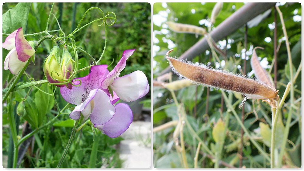 Lathyrus = reukerwt. Na elke bloem wordt een ongeveer 5 tot 6 centimeterlange peul gevormd. Wanneer de peulen dor en droog zijn kun je uit elke peul ongeveer 4 tot 8 ronde donkerbruine zaden oogsten.