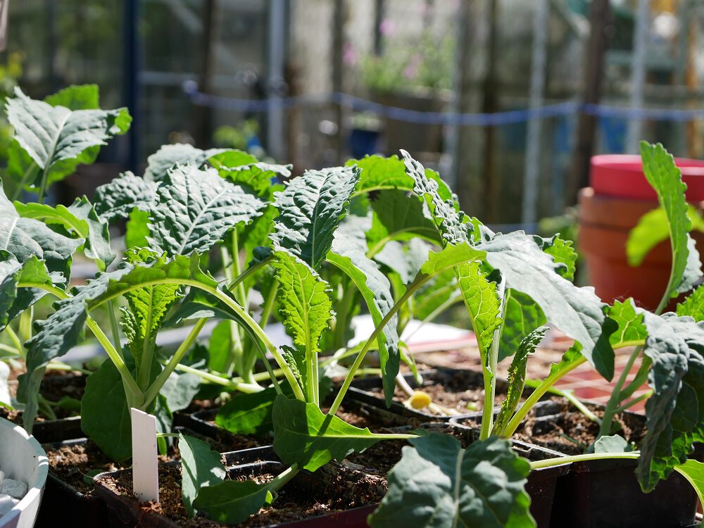 In de keuken is ze dus een waardevolle aanvulling in allerlei (weer eens andere) recepten, maar ze blijkt dat in de moestuin zeker ook te zijn. Want we zaaien palmkool vaak al in april (maar je kunt haar tot in juli zaaien, en daarmee is ze niet alleen geschikt als hoofdteelt maar ook als nateelt na bijvoorbeeld vroege sla en andijvie, of knoflook, uien, tuinbonen of zelfs na vroege aardappelen). Je kunt de zaden vaak vinden onder de naam palmkool, Nero di Toscana, Black Tuscany en Cavolo Nero (en als je op die laatste naam googelt vind je gelijk heel veel heerlijke authentieke Italiaanse recepten). En omdat je haar vooral in pastagerechten, soepen, etc. gebruikt eet je haar dan wat gemakkelijker in de zomer en nazomer dan boerenkool.