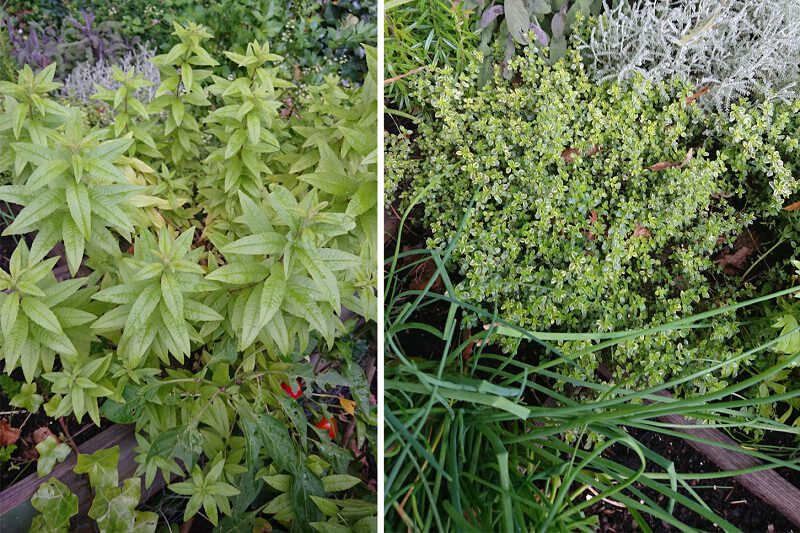 Mijn moestuinbak staat vol kruiden. De kruiden die erin staan variëren van hele bekende, zoals bieslook, basilicum en rozemarijn, tot soorten die niet iedereen kent, zoals de op de foto afgebeelde citroenverbena en citroentijm. Citroenverbena kan uitgroeien tot een ontzettend grote struik, dus zodra hij nog een cm of 10 is gegroeid, ga ik hem uitplanten in een pot. Citroenverbena is erg lekker om siroop van te maken. Kook water met suiker in een pan. Doe een bos citroenverbena erbij en laat dit zeker 3 uur trekken. Zo simpel is het om eigengemaakte siroop te maken. De citroentijm gebruik ik altijd om olie van te trekken. Vul een weckpot met een grote handvol citroentijm en doe hier zonnebloemolie bij. Laat dit zeker 3 maanden staan en daarna kun je de lekkere, frisse olie gebruiken voor salades.