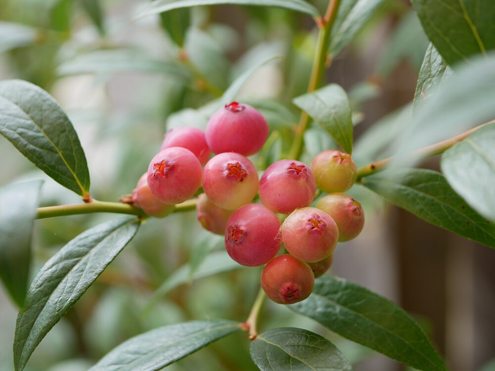 Er zijn trouwens ook verschillen in kleuren; soms meer lichtblauw en soms juist heel donker, maar ze hebben allemaal het karakteristieke ‘bedauwde’ laagje. De bijzonderste in kleur is wel de Pink Lemonade, met roze blauwe bessen. Die struiken zijn ook mooi, met wat kleiner blad. In onze tuin geven ze helaas wel een iets mindere opbrengst, al ligt dat misschien ook aan de omstandigheden.