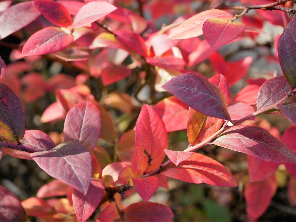 Tot slot: blauwe bessen zijn niet alleen heel lekker, maar ook heel gezond. En het zijn mooie struiken, niet alleen wanneer ze bloeien en de gekleurde bessen dragen. De meeste rassen geven in de herfst namelijk ook nog eens een toegift door een prachtige herfstkleur, zoals op de foto hieronder te zien is.