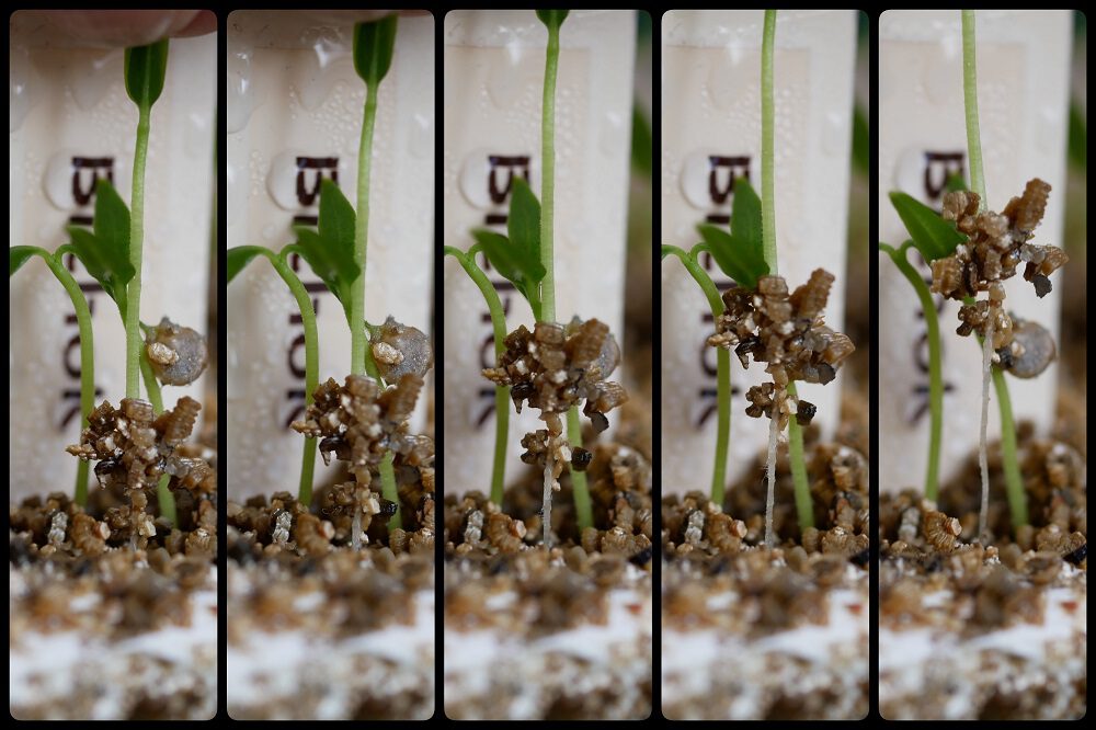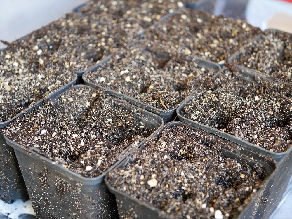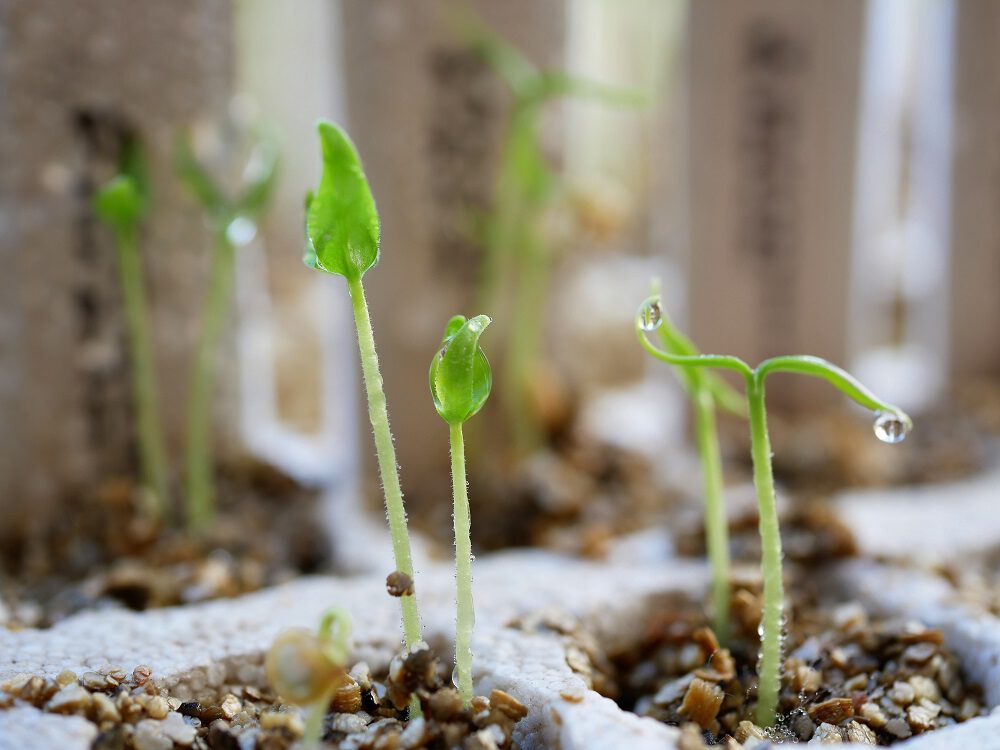 Ik verspeen de zaailingen wanneer ze alleen nog maar hun kiemblaadjes hebben. In vermiculiet kunnen de zaden heel makkelijk kiemen maar er zit geen voeding in. Om na het kiemen te kunnen groeien moet de zaailingen dus vrij vlot worden overgezet in een potje met potgrond.