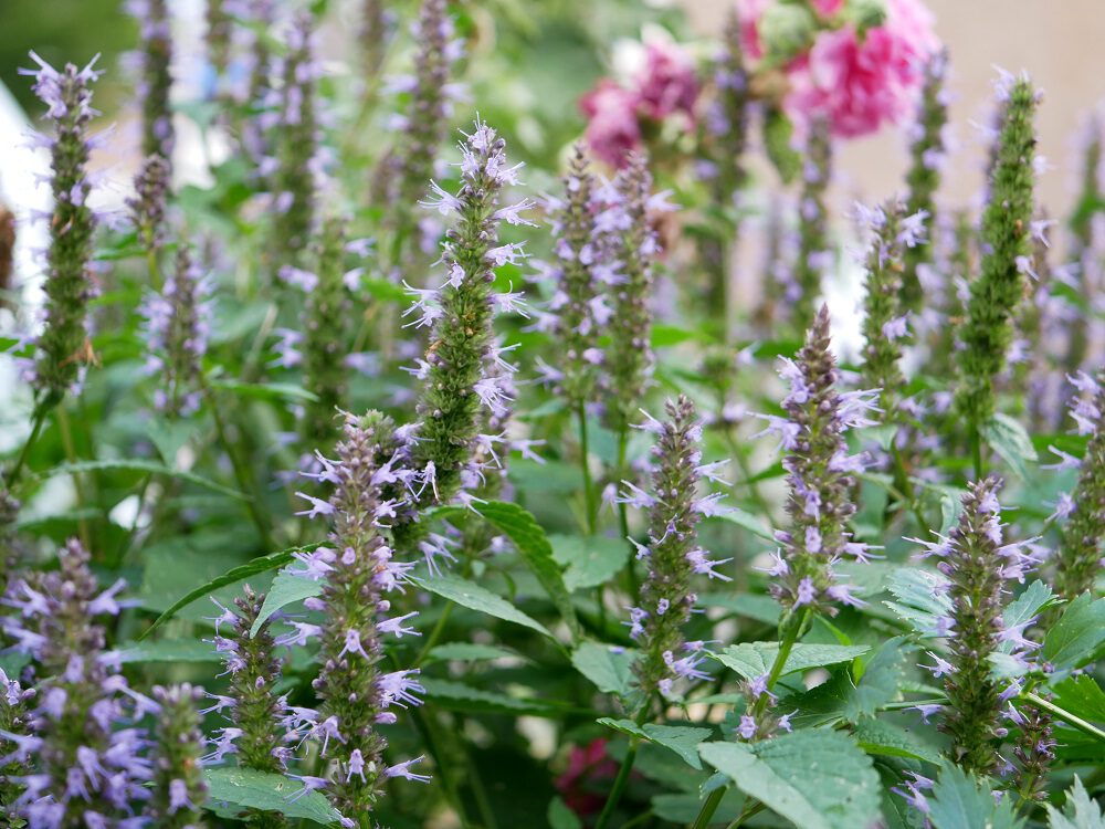 Ik heb dit jaar de Agastache ‘Fleur’ staan met mooie grote bloeiaren met oranjeroze bloempjes. Erg mooi. Veel fijner en kleiner is deze Agastache ‘After Eight’, misschien in bloeivorm minder opvallend dan de ‘Fleur’, maar in de geur onovertroffen. Want ze ruikt zoals de naam aangeeft; naar mintchocolaatjes. En ze is eetbaar, zowel het blad als de bloempjes. Mijn favoriet is het blad, heerlijk in de thee!