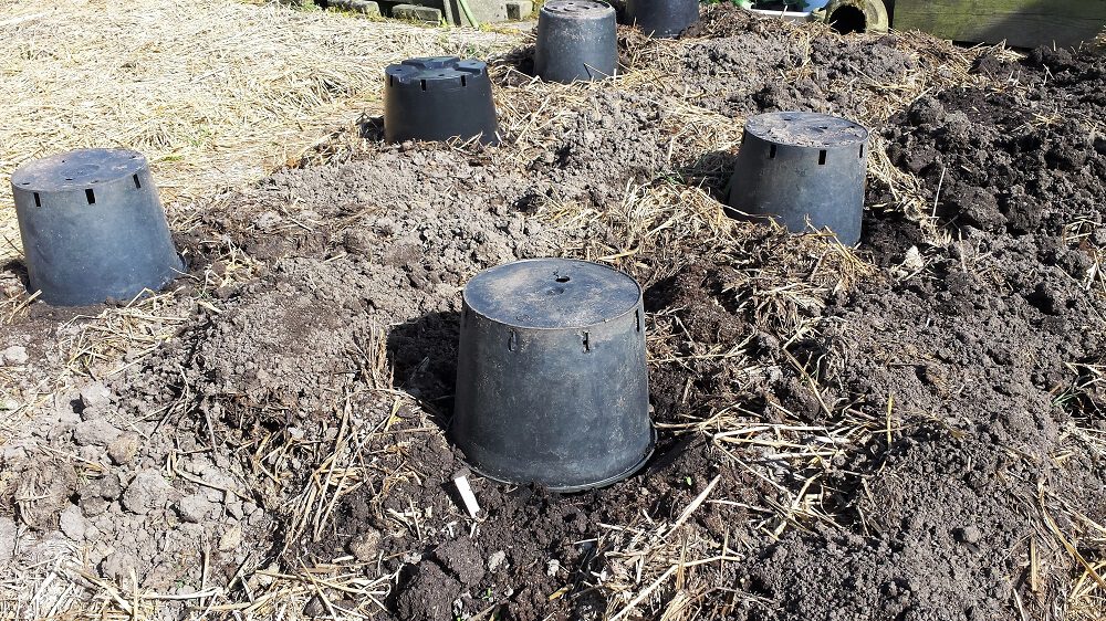 En zo kun je dus al snel na ijsheiligen je eerste boontjes, courgettes, etc. uitplanten. Zoals al eerder gezegd: houd de weerberichten in de gaten; mochten er half mei toch nog plotseling 1 of 2 koude nachten met lichte vorst komen, zet dan een zwarte plastic pot overdag over de dan nog jonge zaailingen heen; de warmte wordt daaronder gevangen en blijft in de nacht nog lang rond de zaailingen hangen. Die 2 of 3 graden verschil kunnen net het verschil maken: