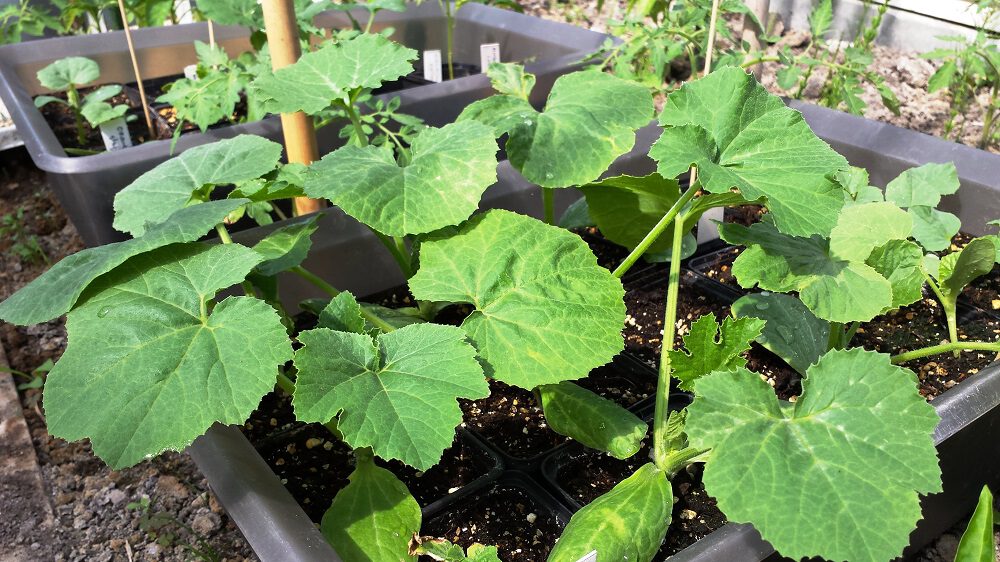 Op deze oude foto zie je courgettezaailingen op 09 mei; goed getimed want ze zijn al groot en sterk en mogen nu uitgeplant worden
