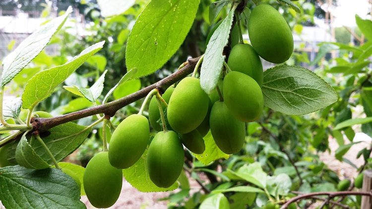 En ook de pruimen doen het goed. Op de foto zie je het ras Reine Victoria, vorig jaar een beurtjaar gehad maar nu zit ze vol met vruchten. Zo vol dat we het nog een week of 2 aankijken, zien wat ze zelf aan vruchten gaat laten vallen. En als dat te weinig is zullen we er zelf nog wat vruchtjes tussenuit knippen. Want liever 10 kilo mooie, grote, sappige en rijpe pruimen, dan 20 kilo harde, kleine, zure pruimpjes. Kwaliteit voor kwantiteit.
