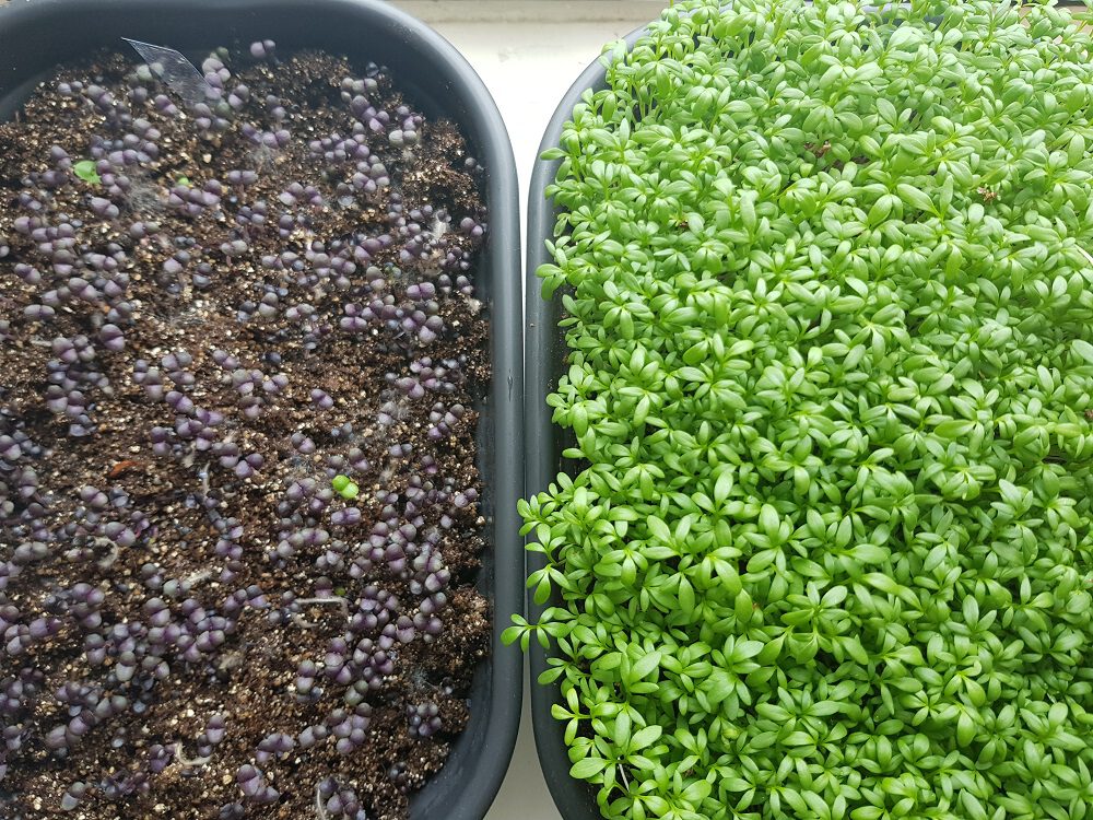 - Peultjes – hebben licht nodig, maar niet heel veel warmte. Als het te warm is, worden het lange slungelige plantjes die later veel gevoeliger zijn voor ziektes.