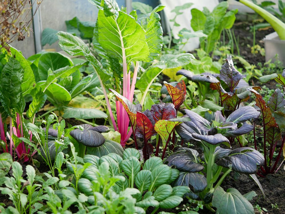 Sommige soorten kunnen we nu volop oogsten uit tuin en kas zoals sla, palmkool, winterpostelein en rucola. Van sommige soorten kunnen we nu wat blaadjes plukken, maar zullen we pas in het voorjaar echt kunnen oogsten. Denk bijvoorbeeld aan de bietjes, worteltjes en venkel.