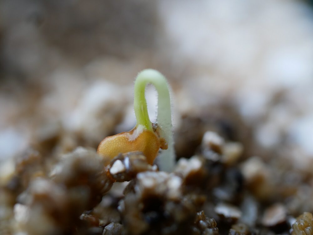 Na het kiemen moeten de zaailingen (als ze 2 volle kiemblaadjes heeft) vanuit het vermiculiet worden overgezet naar een potje met potgrond in het volle licht: want nu ze is gekiemd heeft ze voeding nodig, en het volle licht zorgt dat de zaailing niet lang en dun wordt.