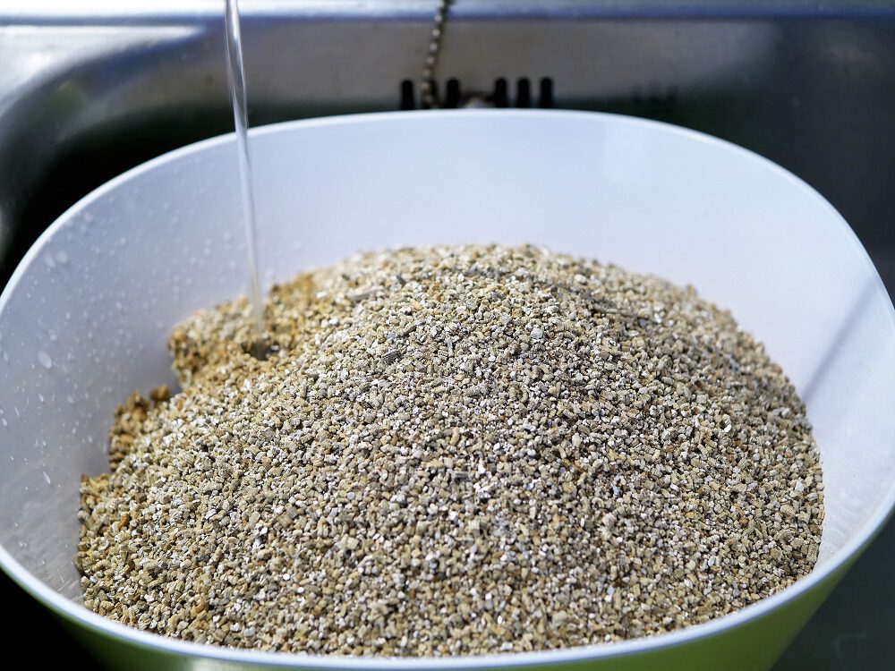 Welke van de twee manieren je ook gebruikt: doe het vermiculiet in een schaal en laat er zo veel (lauwwarm) water in lopen tot het vermiculiet onder water staat.