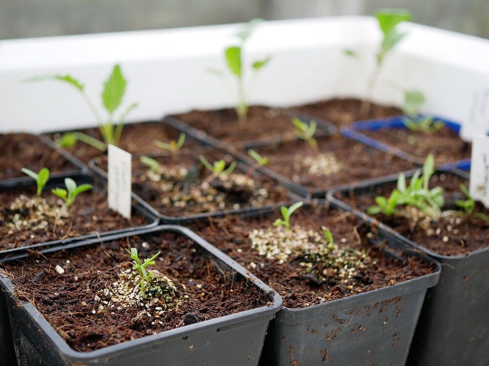 Soms zijn zaailingen nog heel klein en groeien heel langzaam (zoals knolselderij, peterselie en bleekselderij). In een eigen potje met potgrond kunnen ze nog een paar weken goed groeien.