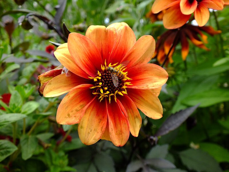 Deze Dahlia heeft juist een duidelijk en open hart van de bloem en lokt daarmee juist veel bestuivers.