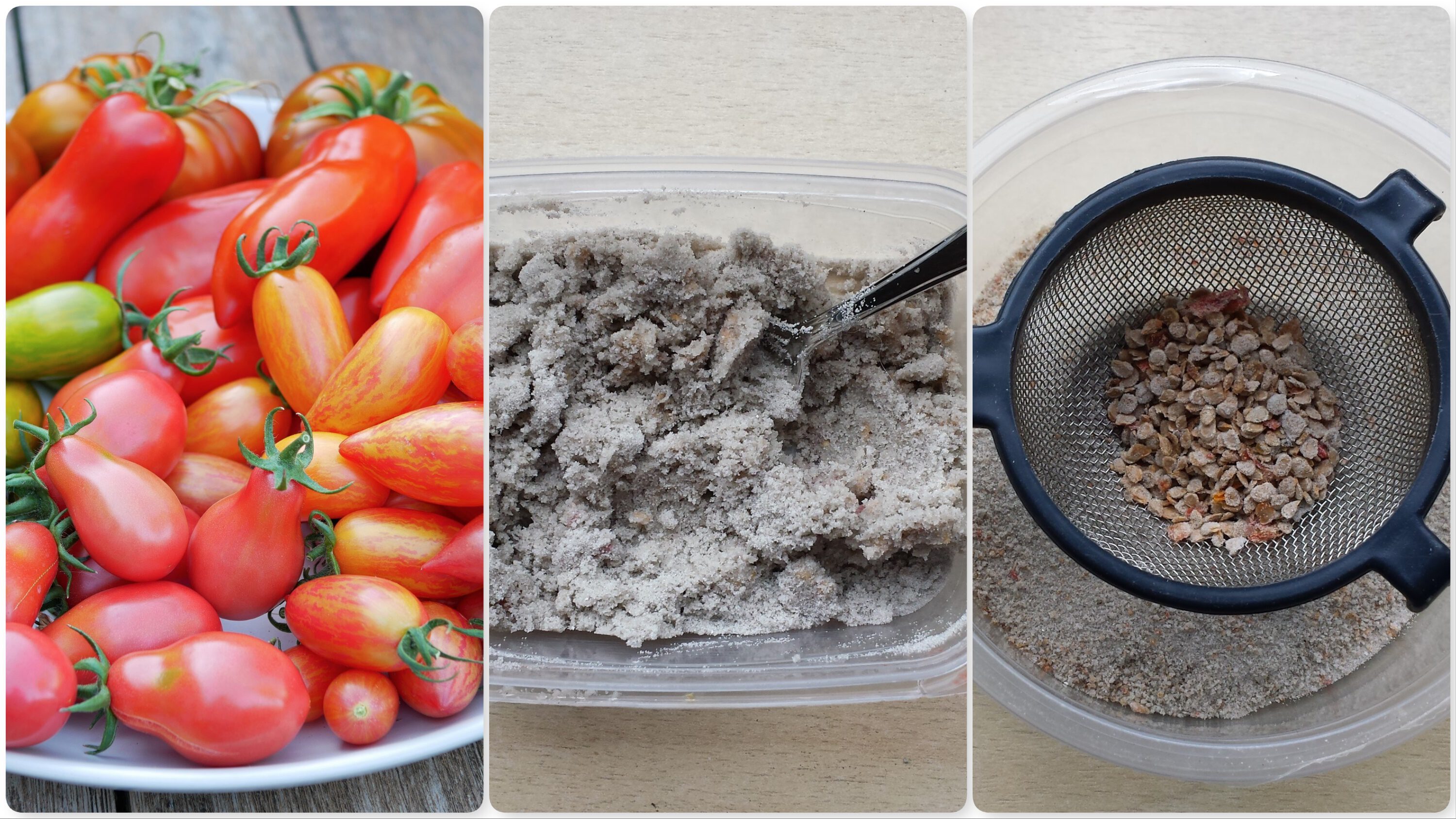 De zaden van tomaten bevatten een kiemremmend geleilaagje, je kunt dat geleilaagje oplossen door het sap met de zaden van tomaten te laten fermenteren, maar dat is een vies werkje dat vooral handig is als je veel zaden wilt oogsten. Voor een kleinere hoeveelheid zaden is het handiger om de zaden met geleilaagje op een keukenpapiertje te ‘smeren’ en dat te laten drogen. Je kunt de gedroogde zaden later van het papiertje ‘pulken’ of zaai ze met papier en al, dat gaat ook prima. Een andere methode is het mengen van de zaden-in-gelei met wat fijn zand; goed roeren, een aantal dagen laten drogen en dan zeef je de zaden gemakkelijk uit het zand.